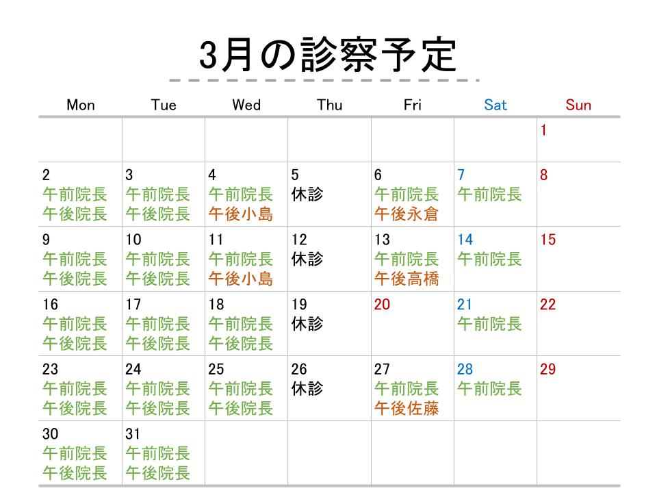 - ★診療予定のお知らせ★